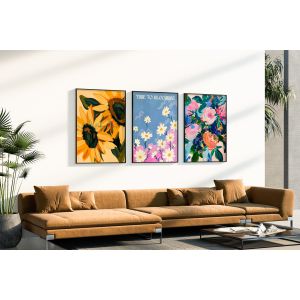 • Printemps et été : Pendant les mois de printemps et d'été, optez pour des posters aux couleurs vives ou aux motifs naturels pour refléter l'énergie et la vivacité de la saison. Pensez à des motifs avec des fleurs, des plages ou des œuvres d'art abstraites et vibrantes.