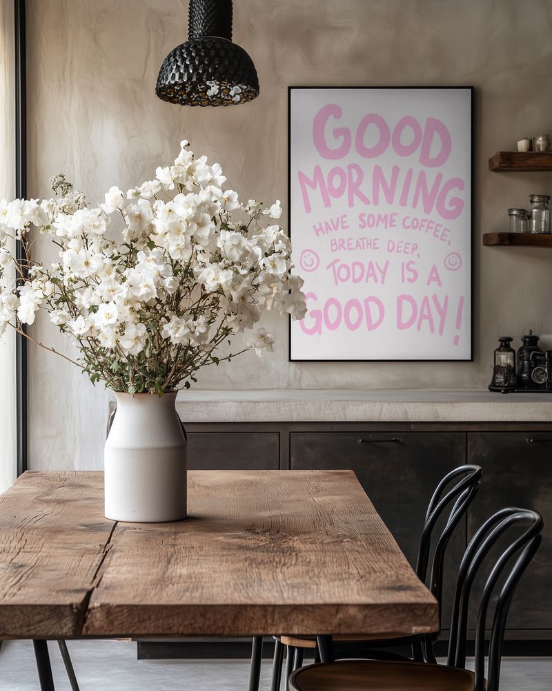 • Printemps et été : Pendant les mois de printemps et d'été, optez pour des posters aux couleurs vives ou aux motifs naturels pour refléter l'énergie et la vivacité de la saison. Pensez à des motifs avec des fleurs, des plages ou des œuvres d'art abstraites et vibrantes.