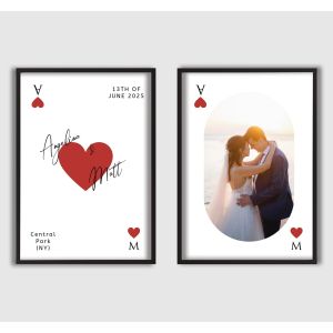 Célébrez votre histoire d'amour avec nos affiches de mariage personnalisées - des impressions magnifiquement personnalisables conçues pour honorer votre jour spécial. Dans cette collection, vous pouvez personnaliser des designs élégants inspirés du mariage avec vos noms, la date du mariage, le lieu et des détails significatifs pour créer une pièce d'art unique qui capture l'essence de votre relation.